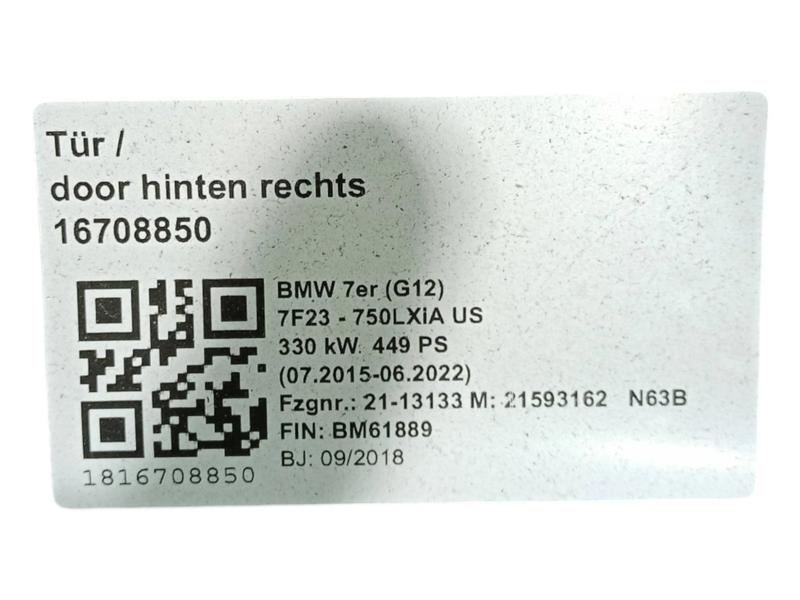 41527423702 Puerta trasera BMW 7 Series G11, 7 Series G11 LCI, 7 Series G12, 7 Series G12 LCI