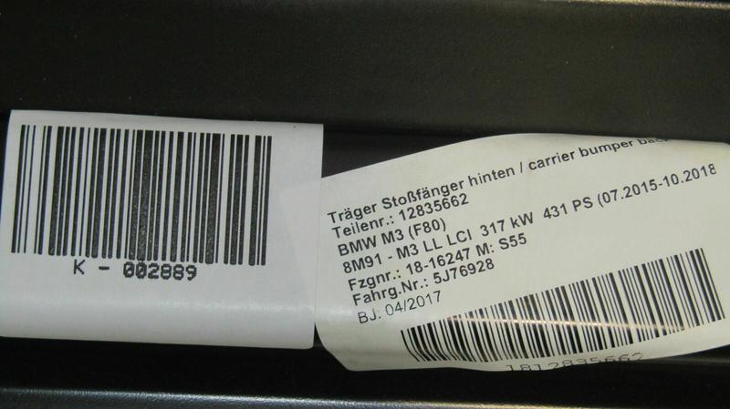 51127256927 Travesaño parachoques trasero BMW 3 Series F30, 3 Series F31, 3 Series F80 M3