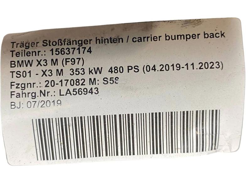 51127400008 Travesaño parachoques trasero BMW X3 G01, X3 G08, X3 M F97, X4 G02, X4 M F98