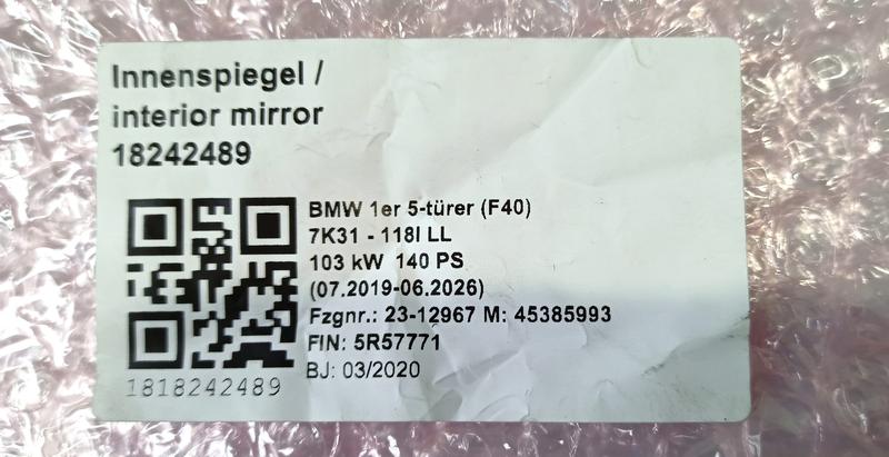 51166838309 Espejo retrovisor interior BMW 1 Series F40, 8 Series F91 M8 Convertible, 8 Series F92 M8 Coupé…