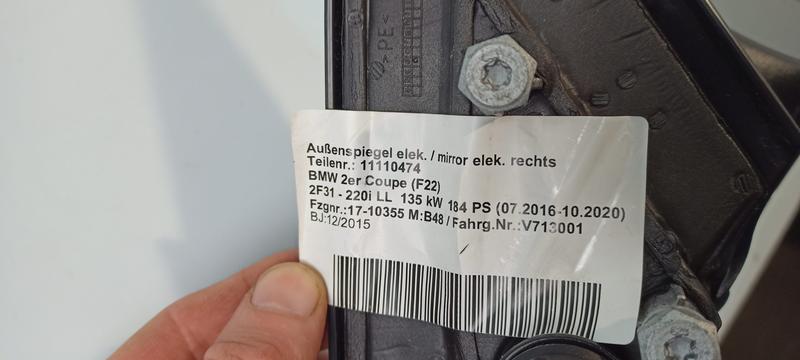51167268550 Retrovisor eléctrico puerta delantera BMW 1 Series F21, 1 Series F21 LCI, 2 Series F22, 2 Series F22 LCI…