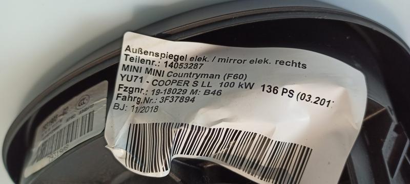 51167471260 Retrovisor eléctrico puerta delantera BMW MINI Countryman F60