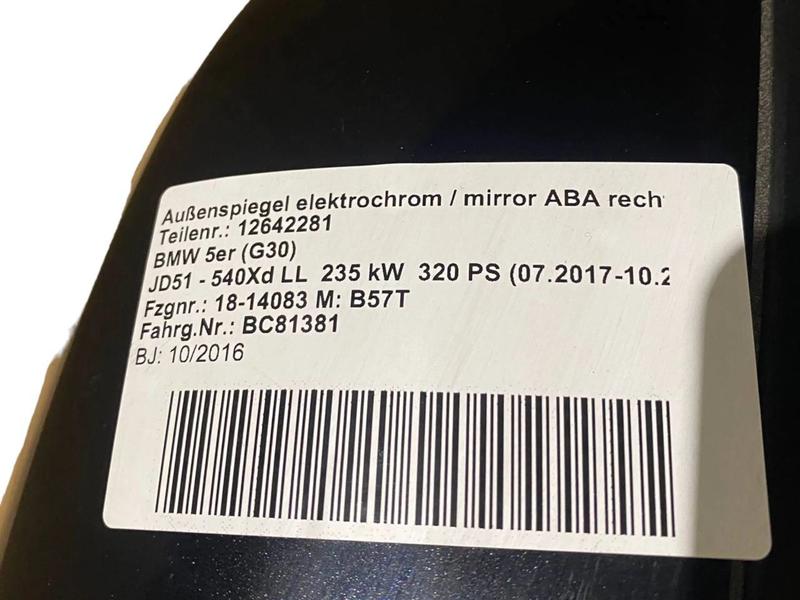 51167485156 Retrovisor eléctrico puerta delantera BMW 5 Series G30, 5 Series G30 LCI, 5 Series G31 Touring…