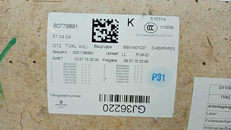 51417448485 Tapizado puerta trasera BMW 7 Series G11, 7 Series G11 LCI, 7 Series G12, 7 Series G12 LCI
