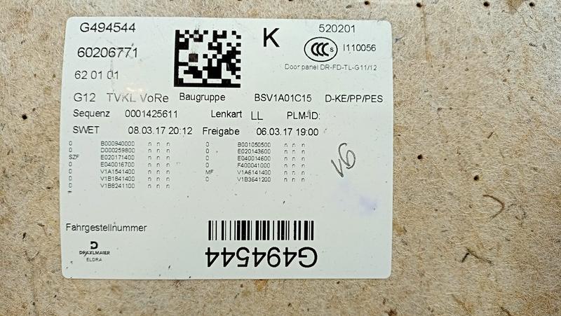 51417448518 EXMAESTRO tapizados puerta BMW 7 Series G11, 7 Series G11 LCI, 7 Series G12, 7 Series G12 LCI