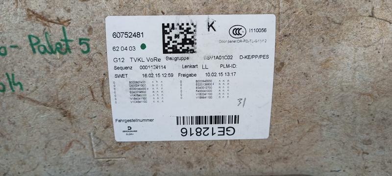 51417455514 EXMAESTRO tapizados puerta BMW 7 Series G11, 7 Series G11 LCI, 7 Series G12, 7 Series G12 LCI