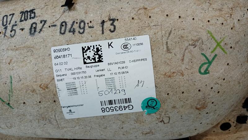 51427447514 Tapizado puerta corredera BMW 7 Series G11, 7 Series G11 LCI