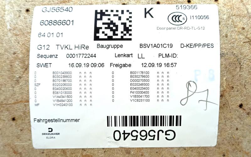 51427448406 Tapizado puerta trasera BMW 7 Series G12, 7 Series G12 LCI