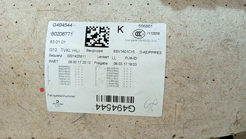 51427448417 Tapizado puerta trasera BMW 7 Series G12, 7 Series G12 LCI