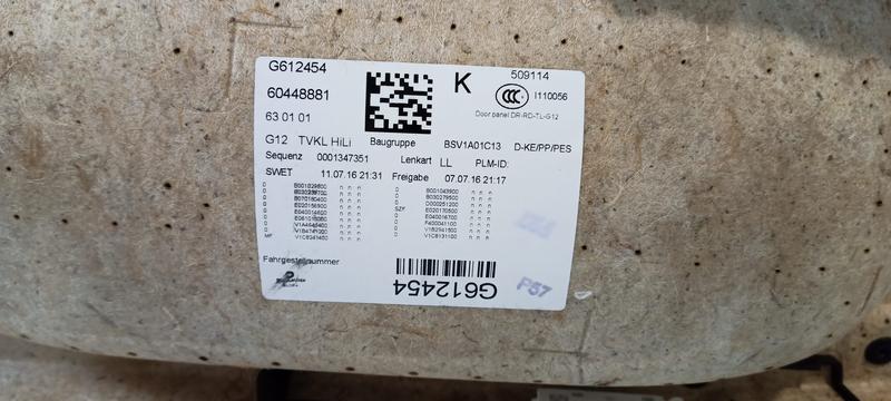 51427448429 Tapizado puerta trasera BMW 7 Series G12, 7 Series G12 LCI