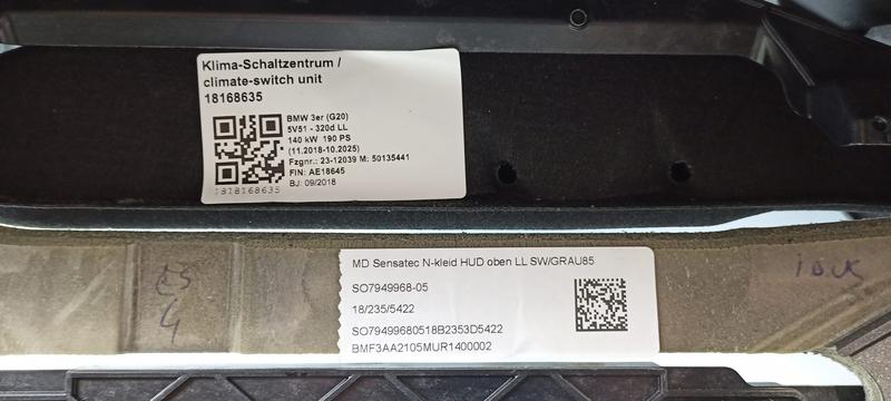 51459476408 Salpicadero BMW 3 Series G20 Saloon, 3 Series G20 Saloon LCI, 3 Series G21 Touring, 3 Series G21 Touring LCI, 3 Series G28 Saloon, 3 Series G28 Saloon LCI, 4 Series G22 Coupé, 4 Series G22 Coupé LCI, 4 Series G23 Convertible, 4 Series G23 Convertible LCI, 4 Series G26 Gran Coupé, 4 Series G26 Gran Coupé LCI