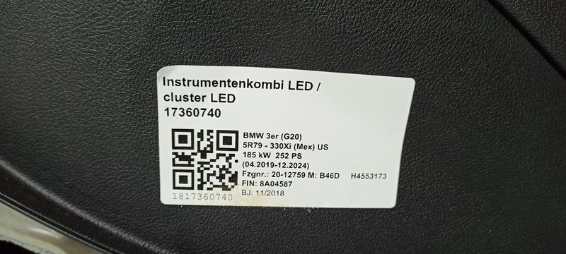 51459476408 Salpicadero BMW 3 Series G20 Saloon, 3 Series G20 Saloon LCI, 3 Series G21 Touring, 3 Series G21 Touring LCI