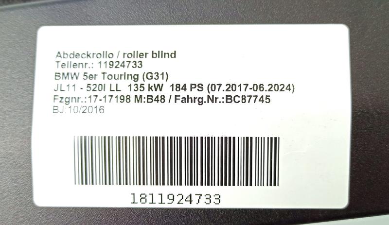 51477466711 Cubierta bandeja trasera BMW 5 Series G31 Touring, 5 Series G31 Touring LCI