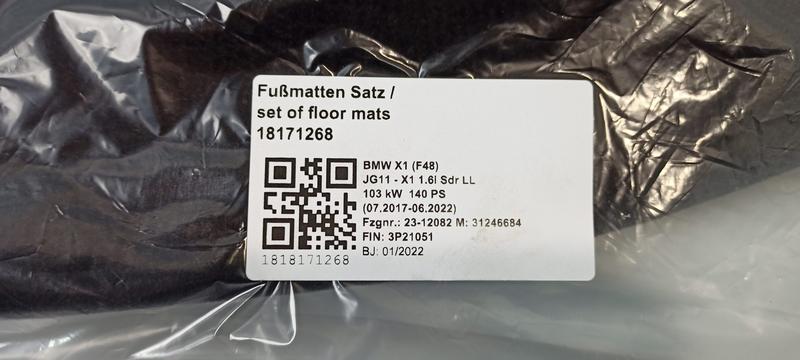 51477471533 Alfombrilla delantera BMW X1 F48 LCI, X2 F39