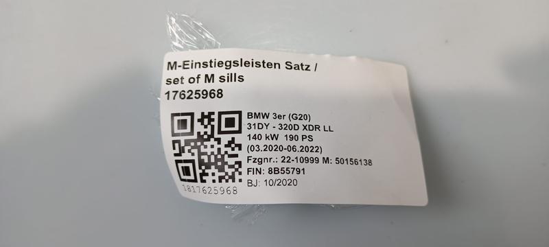 51478079739 Embellecedor umbral delantero BMW 3 Series G20 Saloon, 3 Series G20 Saloon LCI, 3 Series G21 Touring…