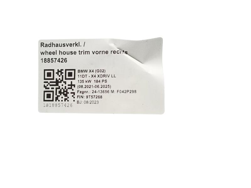 51717394816 Guardabarros interior delantero BMW X3 G01 LCI, X3 G08 LCI, X3 M F97 LCI, X4 G02 LCI, X4 M F98 LCI