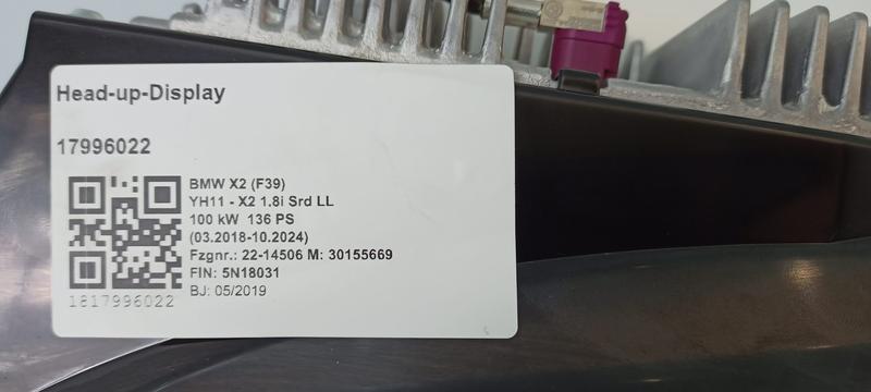 62308736366 Pantalla Head-Up Display BMW X2 F39