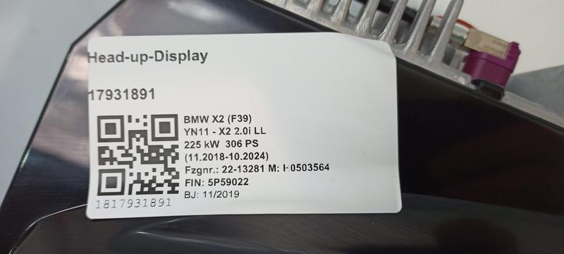 62308736366 Pantalla Head-Up Display BMW X2 F39