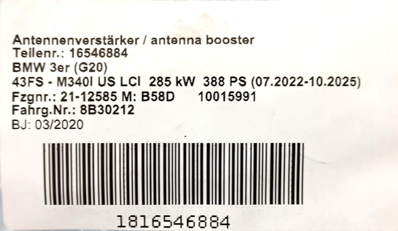 65206835155 Filtro antena BMW 1 Series F40, 3 Series G20 Saloon, 3 Series G20 Saloon LCI, 3 Series G28 Saloon…
