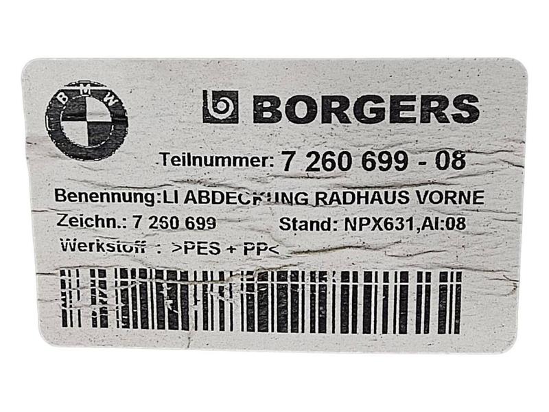 7260699 Guardabarros interior delantero 3 Series F30, 3 Series F30 LCI, 3 Series F31, 3 Series F31 LCI, 3 Series F35…