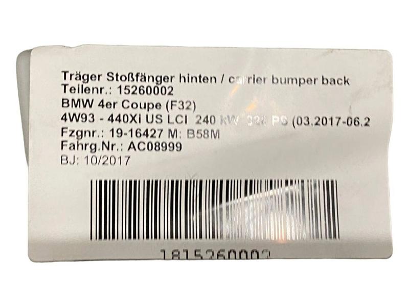 7285543 Travesaño parachoques trasero 4 Series F32, 4 Series F32 LCI, 4 Series F33, 4 Series F33 LCI…