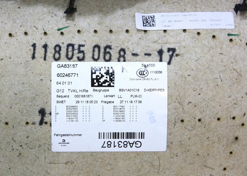 7448284 Tapizado puerta trasera BMW 7 Series G11, 7 Series G11 LCI, 7 Series G12, 7 Series G12 LCI