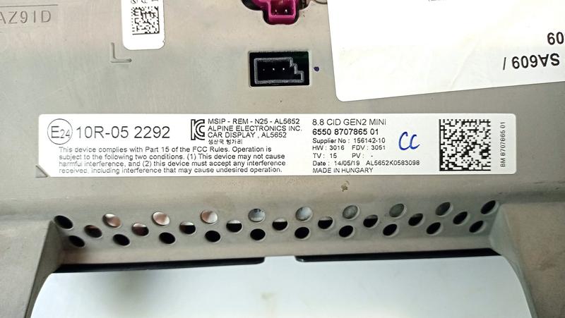 8707865 Pantalla BMW MINI Cabrio F57, MINI Clubman F54 LCI, MINI Countryman F60, MINI F55, MINI F56