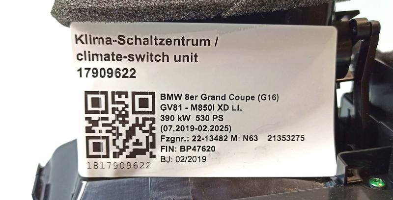 9458564 Módulo climatización BMW 8 Series F91 M8 Convertible, 8 Series F92 M8 Coupé, 8 Series G14 Convertible…