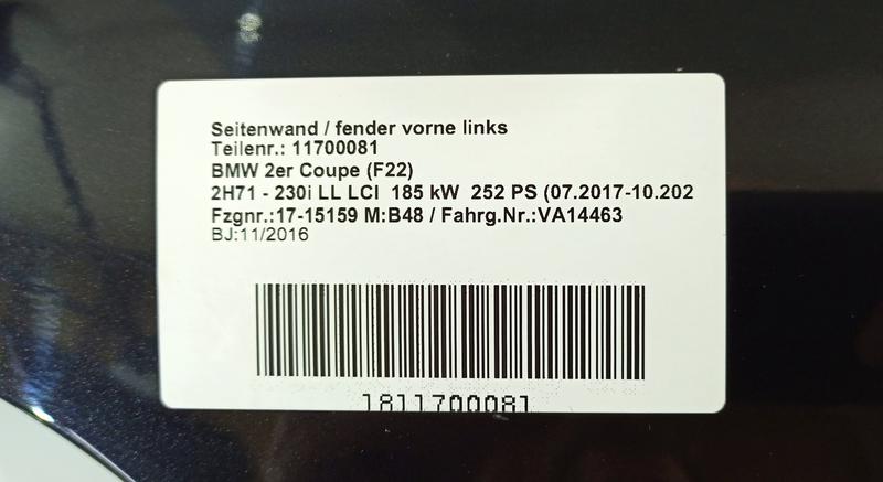 9633541 Aleta BMW 1 Series F20, 1 Series F20 LCI, 1 Series F21, 1 Series F21 LCI, 2 Series F22, 2 Series F22 LCI…