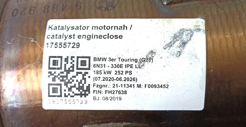 18329488920 Catalizador/FAP/DPF BMW 3 Series G20 Saloon, 3 Series G20 Saloon LCI, 3 Series G21 Touring…