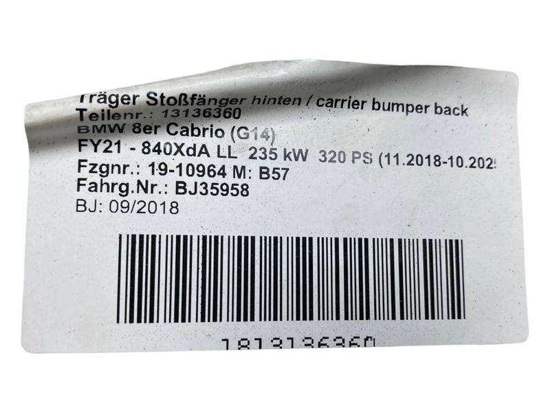 51127373849 Travesaño parachoques trasero BMW 8 Series F91 M8 Convertible, 8 Series F92 M8 Coupé…