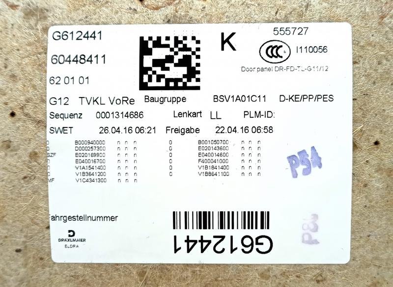 51417448510 EXMAESTRO tapizados puerta BMW 7 Series G11, 7 Series G11 LCI, 7 Series G12, 7 Series G12 LCI
