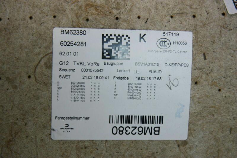 51417455074 Tapizado puerta trasera BMW 7 Series G11, 7 Series G11 LCI, 7 Series G12, 7 Series G12 LCI