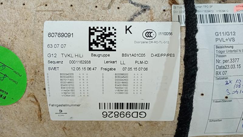 51427448401 Tapizado puerta trasera BMW 7 Series G12, 7 Series G12 LCI