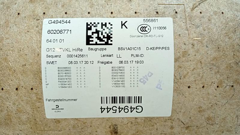 51427448418 Tapizado puerta trasera BMW 7 Series G12, 7 Series G12 LCI