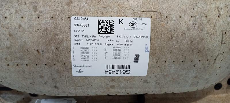 51427448430 Tapizado puerta trasera BMW 7 Series G12, 7 Series G12 LCI