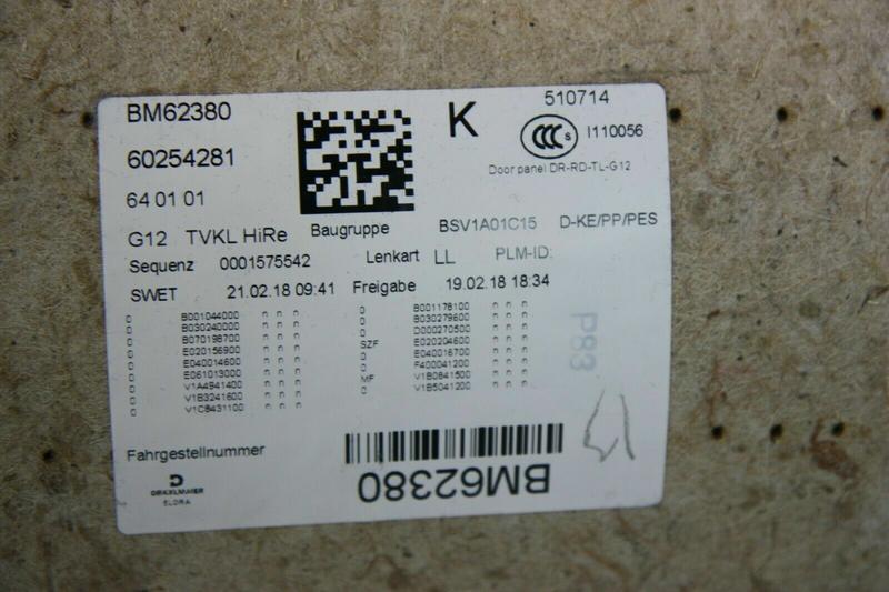 51427455055 Tapizado puerta trasera BMW 7 Series G12, 7 Series G12 LCI