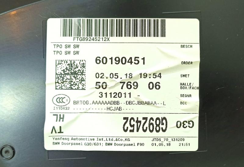 51427477121 Tapizado puerta trasera BMW 5 Series G30, 5 Series G30 LCI