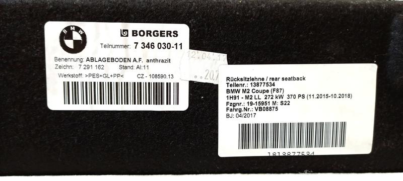 51467346030 Bandeja trasera BMW 2 Series F22, 2 Series F22 LCI, 2 Series F87 M2 LCI