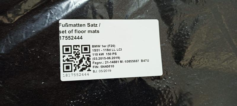 51477332314 Juego alfombrillas BMW 1 Series F20, 1 Series F20 LCI
