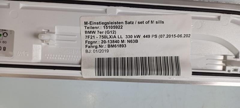 51478061046 Embellecedor umbral delantero BMW 7 Series G11, 7 Series G11 LCI, 7 Series G12, 7 Series G12 LCI