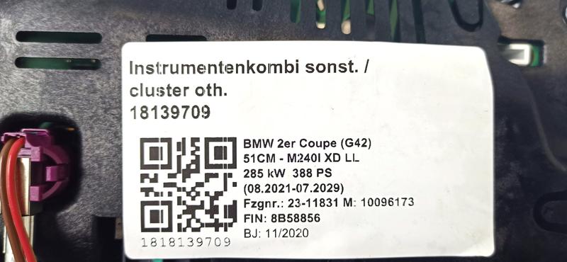 62105A30617 Cuadro instrumentos BMW 2 Series G42, 3 Series G20 Saloon, 3 Series G20 Saloon LCI, 3 Series G21 Touring…