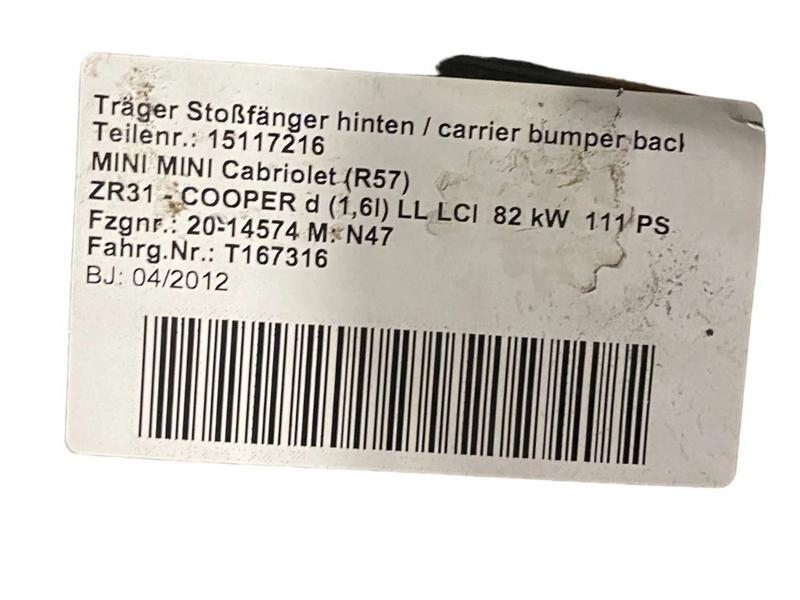 7267028 Travesaño parachoques trasero MINI Cabrio R57 LCI, MINI Coupé R58, MINI R56 LCI, MINI Roadster R59