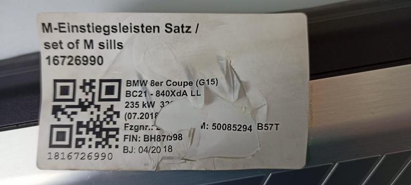 8076405 Embellecedor umbral delantero BMW 8 Series G15 Coupé