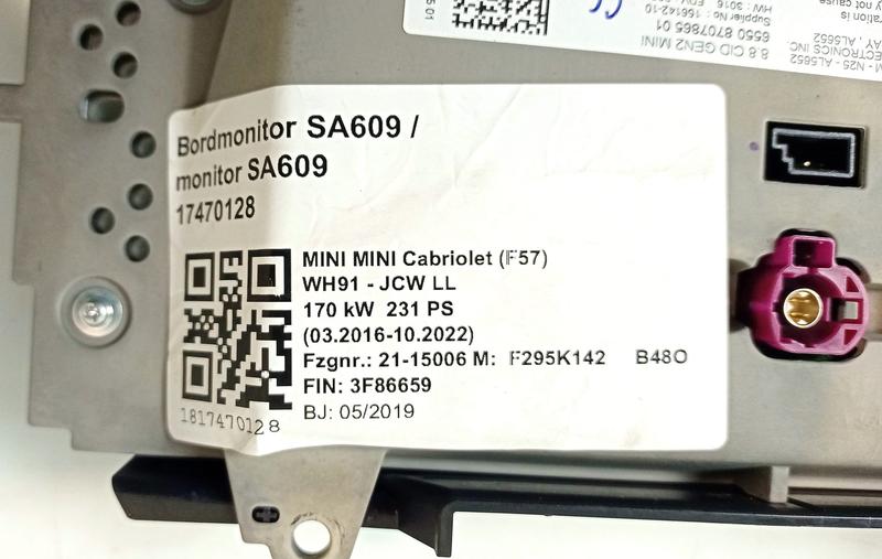 8707865 Pantalla BMW MINI Cabrio F57, MINI Clubman F54 LCI, MINI Countryman F60, MINI F55, MINI F56