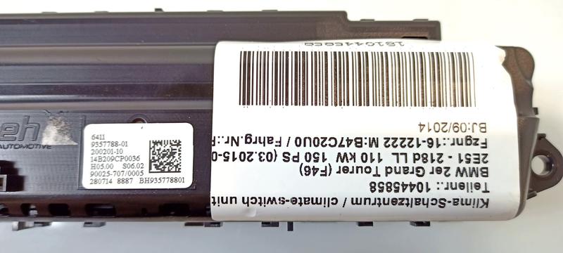 9357788 Módulo climatización BMW 2 Series F45 Active Tourer, 2 Series F45 Active Tourer LCI, 2 Series F46 Gran Tourer…